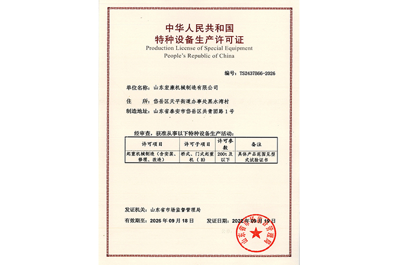 起重機械制造許可證(含安裝修理改造)